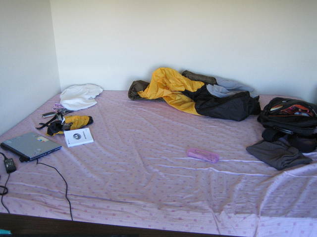 (up: sleeping bag, backpack,....and lots of stuff on the bed in Allegro R604-_-) Hehehe, it is really a wonderful start for me in Seattle though it is hard to fall asleep this night. ^^