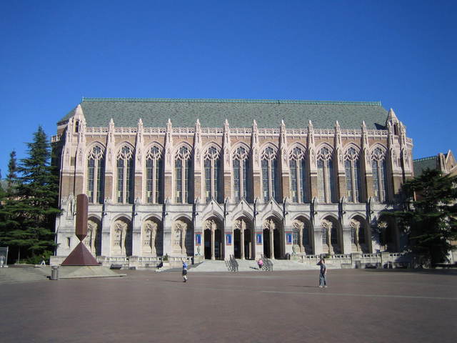 After checking in ISO and IP&E, it was nearly noon. We decided to walk to HUB (Student Union Building) for lunch. Along the way to HUB, I found that every building in UW is exactly beautiful and gigantic, except the Business School (Ha!). The newest hall in UW might be William H. Gates Hall, which is the Law School and donated by Bill Gates. Hence, the hall is named after Bill Gates’ father. Anyways, we saw so many graceful halls and took some pictures; nevertheless, I hardly remember their names and use. (-_-“) It would really take much time for me to get familiar with UW and its neighborhood.