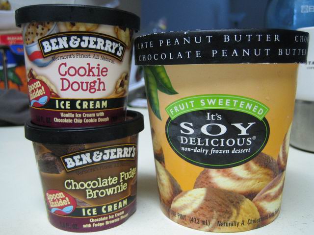 The left one was bought at Whole Foods. Different from usual icecream, its main ingredient is SOY!