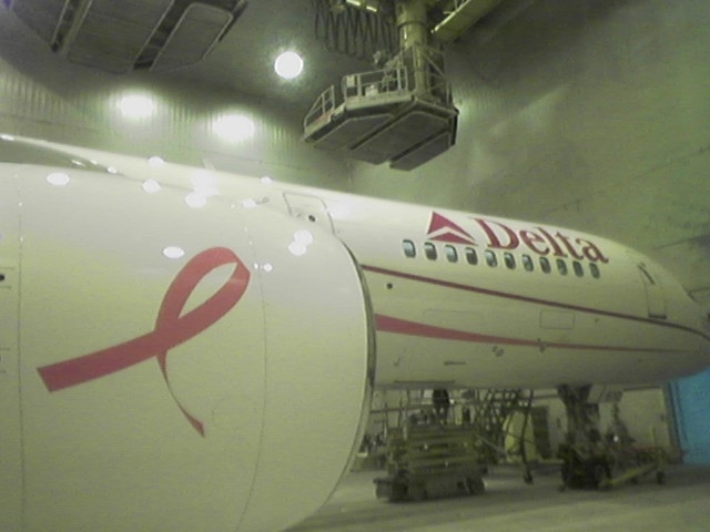 Pink ribbon even fly in the sky!! Delta Airlines design this special aircraft!