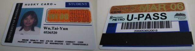 其實已經不再上學了,Husky card沒有太大實際的用處了,除了上頭有Po贊助的uPass愛心;