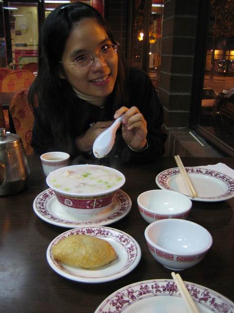 看完夜景,跑去China Town 吃宵夜,挖哈哈,是好久不見的熱敷敷雞蓉粥!!讚讚讚!