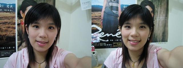 The right one was taken after Chien helped me paint some eye shadows...:p